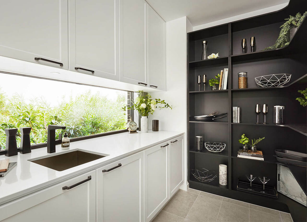 Keep your entertaining area pristine and functional for family and friends to mingle and enjoy, even during meal prep. An adjoining butler’s pantry is an ideal inclusion for pantry organisation in your open-plan layout.