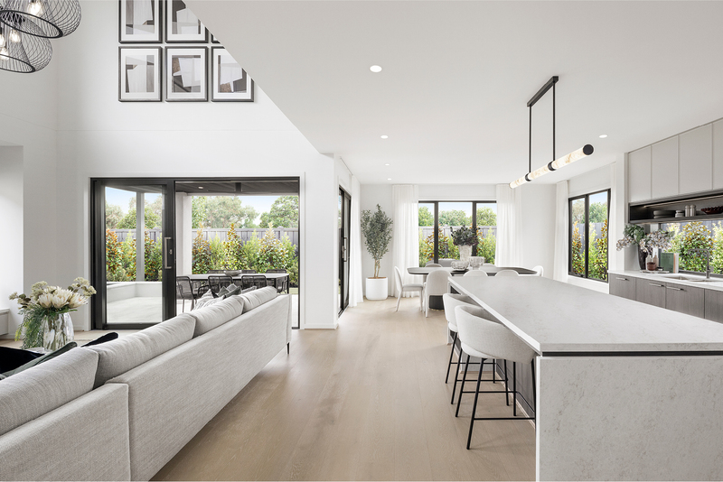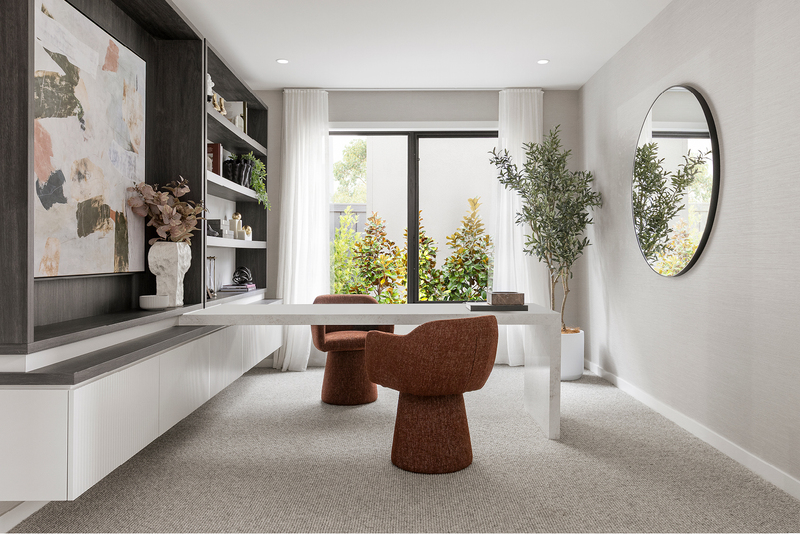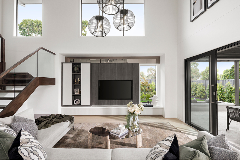 On display at Riverfield Estate in Clyde, this grand-scale home pairs the Brooklyn Hebel facade with the Light Meets Dark interior scheme, offering a clear sense of how architecture, light and material come together in one luxurious design – a pinnacle example of Carlisle’s Affinity Collection home designs.