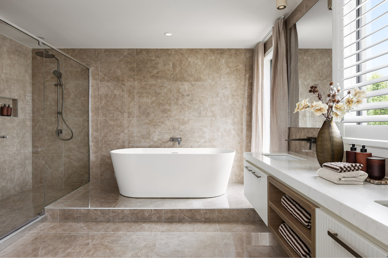 The Montague's character is established through materials rather than statements. Warm walnut joinery, layered stone finishes and soft lighting reflect Carlisle’s Modern Day Timeless interior style, a direction that suits homes where a certain level of elegance is expected.