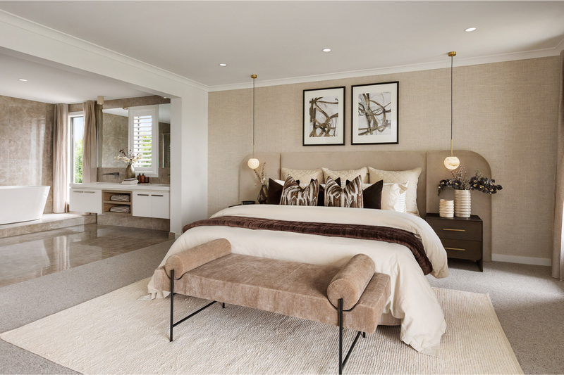 Meanwhile, the master suite spans the front width of the home, creating a private retreat complete with a fully fitted walk-in robe and a luxurious ensuite featuring a freestanding bath set on a raised podium.