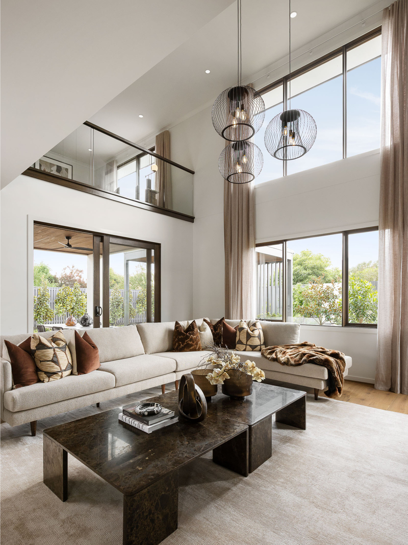 Downstairs, it lifts the main living area, filling the kitchen, dining and even the alfresco spaces with natural light. Upstairs, the activity zone and study enjoy the same openness, overlooking the living area below. It’s a design that keeps everyone connected – whether calling the kids down for dinner or hosting evenings that flow effortlessly between levels.