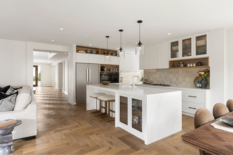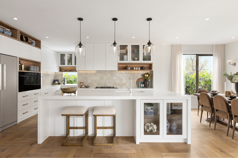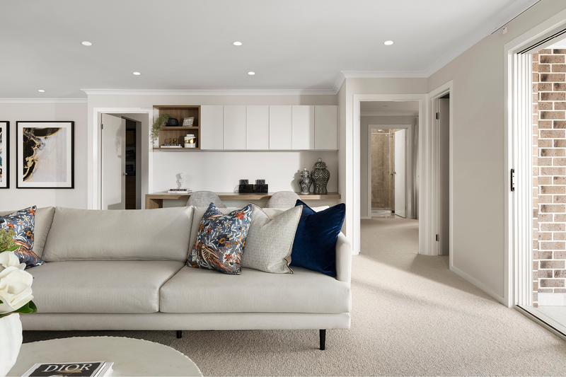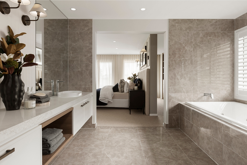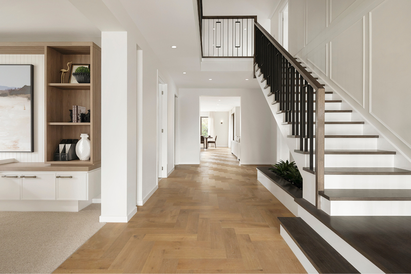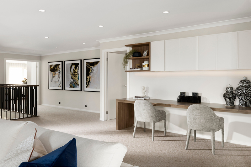 Every detail has been carefully curated to create an atmosphere of calm sophistication, from the herringbone timber floors to the newly styled staircase. As part of the Affinity collection, the Montpellier Grand 54 includes premium details as standard, such as elegant Caesarstone® benchtops and state-of-the-art appliances.