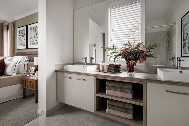 They chose the Amberley Grand Pantry 29, one of Carlisle’s most popular designs and a floorplan that has earned its reputation. Designed for a 14m x 32m block, it delivers generous family living across a considered layout: an expansive open-plan kitchen, meals and living area at the heart of the home, a connected alfresco, a dedicated rumpus at the rear, a study nook for the homework years ahead, and a parents’ retreat with a double vanity ensuite and spacious walk-in robe.