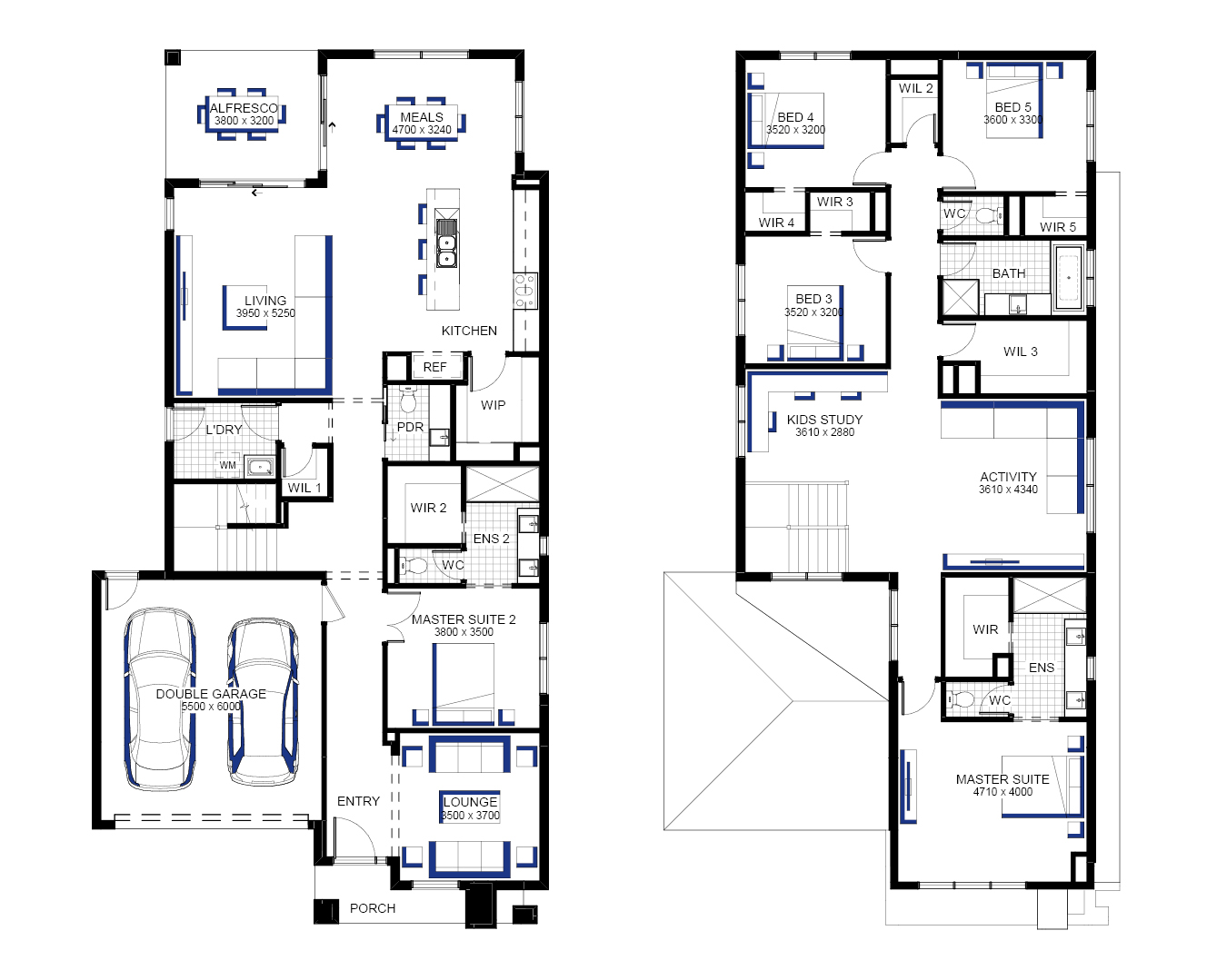 Designed for 12.5m x 25m, 12.5m x 28m, and 14m x 25m lots, these light-filled double storey homes maximise space with flexible, family-focused floorplans.
