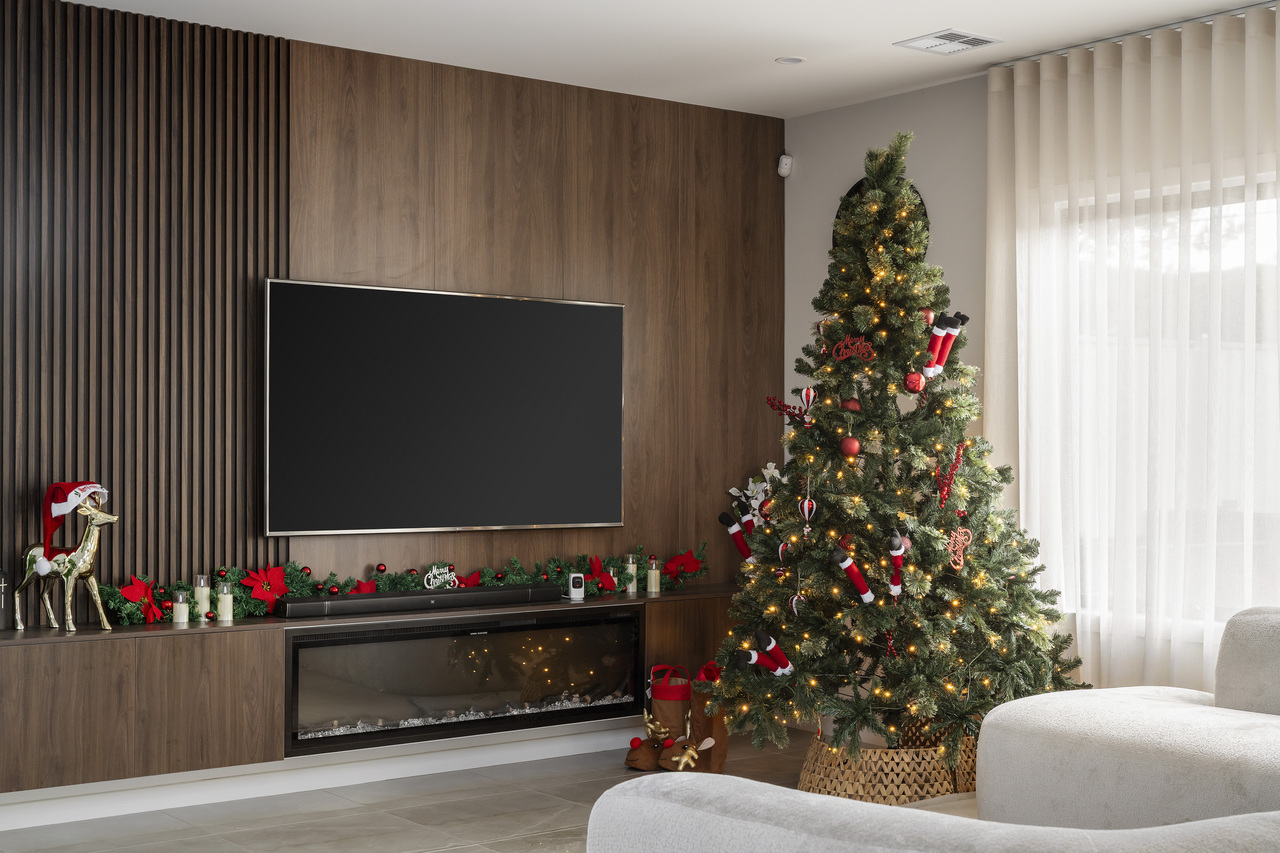 With Christmas approaching, the home feels even more special. Garland winds along the staircase, the tree sparkles in the living room and the open-plan layout creates the perfect backdrop for family gatherings.