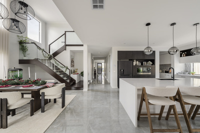 A ground-floor master suite was an early priority, ensuring Tien’s parents have a comfortable long-term retreat for the future. Multiple living areas - including a theatre room, an upstairs rumpus and an expansive open-plan family zone - mean there is always room for the boys to play, for adults to relax and for everyone to live side by side without feeling crowded.