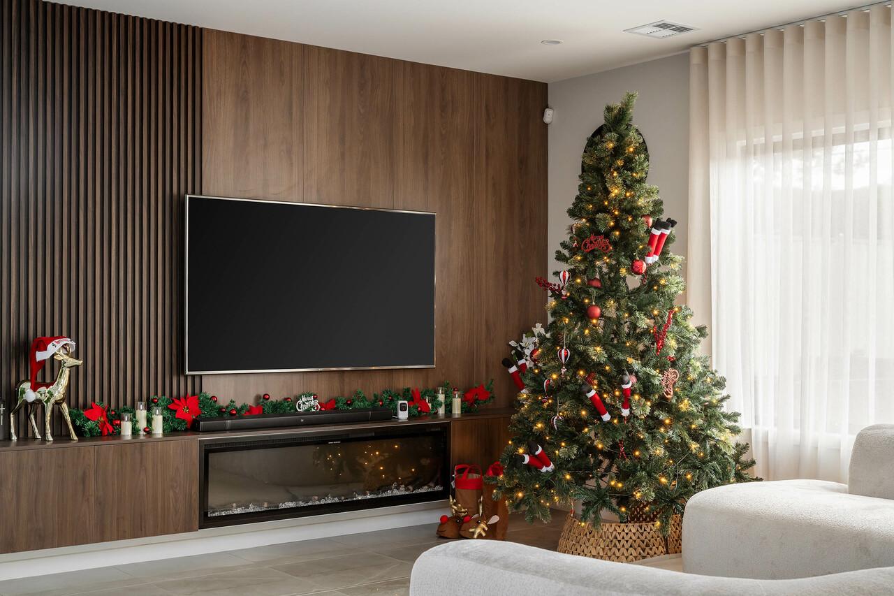 With Christmas approaching, the home feels even more special. Garland winds along the staircase, the tree sparkles in the living room and the open-plan layout creates the perfect backdrop for family gatherings.
